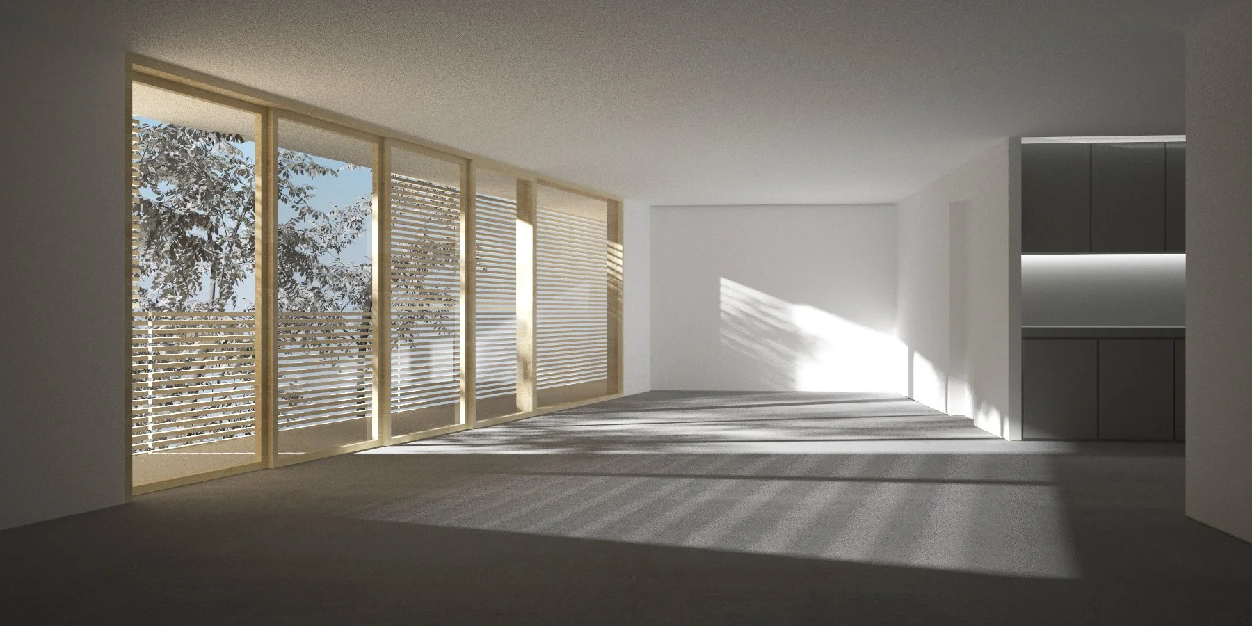 THIS SMALL RESIDENTIAL DEVELOPMENT IS LOCATED IN A QUIET, PEACEFUL NEIGHBORHOOD, SOUTH OF WILSHIRE BOULEVARD AND CLOSE TO THE UCLA CAMPUS. THE LOT IS CURRENTLY OCCUPIED BY A SINGLE FAMILY HOUSE BUILT IN 1939 AND IS SURROUNDED BY TWO AND THREE STORIES APARTMENT BUILDINGS. ALTHOUGH SITUATED IN AN AREA WITH VERY STRICT CODE REQUIREMENTS FOR BUILDING HEIGHT, OPEN SPACE, PARKING STALLS AND EXIT STAIRS, THE CLIENT'S DESIRE WAS TO BUILD A COMBINATION OF STUDIOS AND TWO BEDROOM APARTMENTS. ONE OF THE CHALLENGES OF THE PROJECT WAS TO FIND A SOLUTION THAT WILL EFFICIENTLY USE THE LOT WITHOUT COMPROMISING THE QUALITY OF THE SPACES. DUE TO THE UNITS' ORIENTATION AND ALSO CONSIDERING THEIR RELATIONSHIP WITH THE SURROUNDING BUILDINGS, A SECOND SKIN, MADE OF FIXED AND SLIDING PANELS, WAS ADDED. THE WOODEN SHUTTERS WILL FILTER THE LIGHT AND THE STREET NOISE PROVIDING PRIVACY TO THE INTERIOR SPACES. THE PROJECT CAN ALSO BE CONSIDERED A TYPICAL EXAMPLE OF AN UNDER-BUILT PROPERTY (LOCAL ZONING CODES ALLOW MORE SQUARE FOOTAGE OF LEASABLE, PURCHASABLE SQUARE FOOTAGE) CONVERTED INTO AN INVESTMENT PROPERTY.
